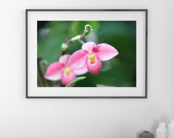 Pink Lady's Slipper Orchid print, Paphiopedilum orchid picture, coral orchid lover gift, large over bed decor, floral wall art, 5x7 to 40x60