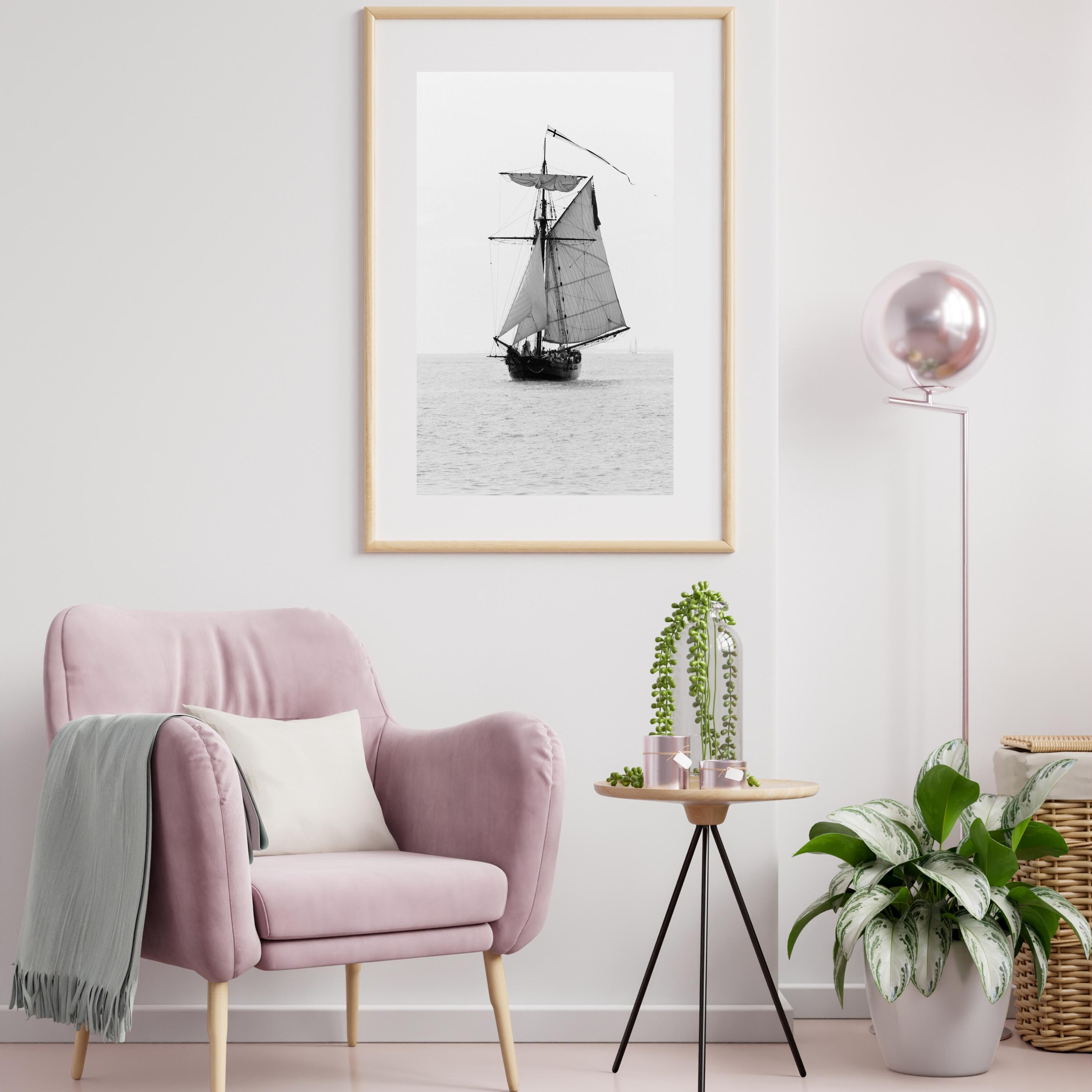 Nautical photography. Black and white picture of an old historic ship sailing in the waters of Lake Michigan. Available on paper (unframed and framed), canvas, and framed canvas. Select from a variety of sizes - from 5x7 to 32x48 inches. Feel free to send me a message if you need a custom size or if you have any other questions; I respond quickly.