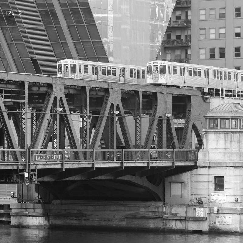 Black and white Chicago EL Train photo print. Two CTA trains crossing a bridge over Chicago River. Horizontal photo. Available on paper (unframed and framed), canvas, and framed canvas. Select from a variety of sizes - from 5x7 to 32x48 inches. Feel free to send me a message if you need a custom size or if you have any other questions; I respond quickly.